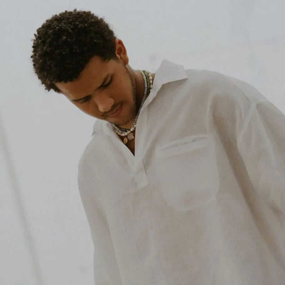Unisex, oversized and fresh, this is the JONAS shirt. A short-sleeved shirt with a fresh and comfortable style, it has a pocket on the chest and a loop on the back.