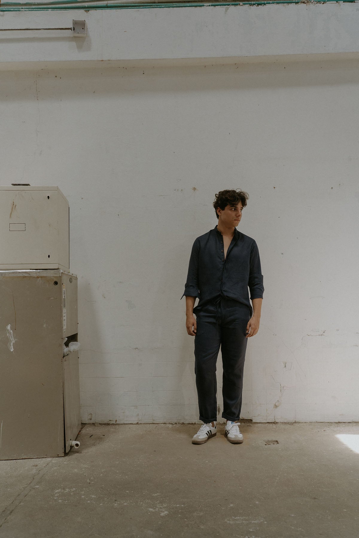 JONAS is a pair of jogger-inspired pants with a comfortable, subtly piped fit, elastic waistband and zipper. It has welt pockets on the side seams and back for a more formal look.