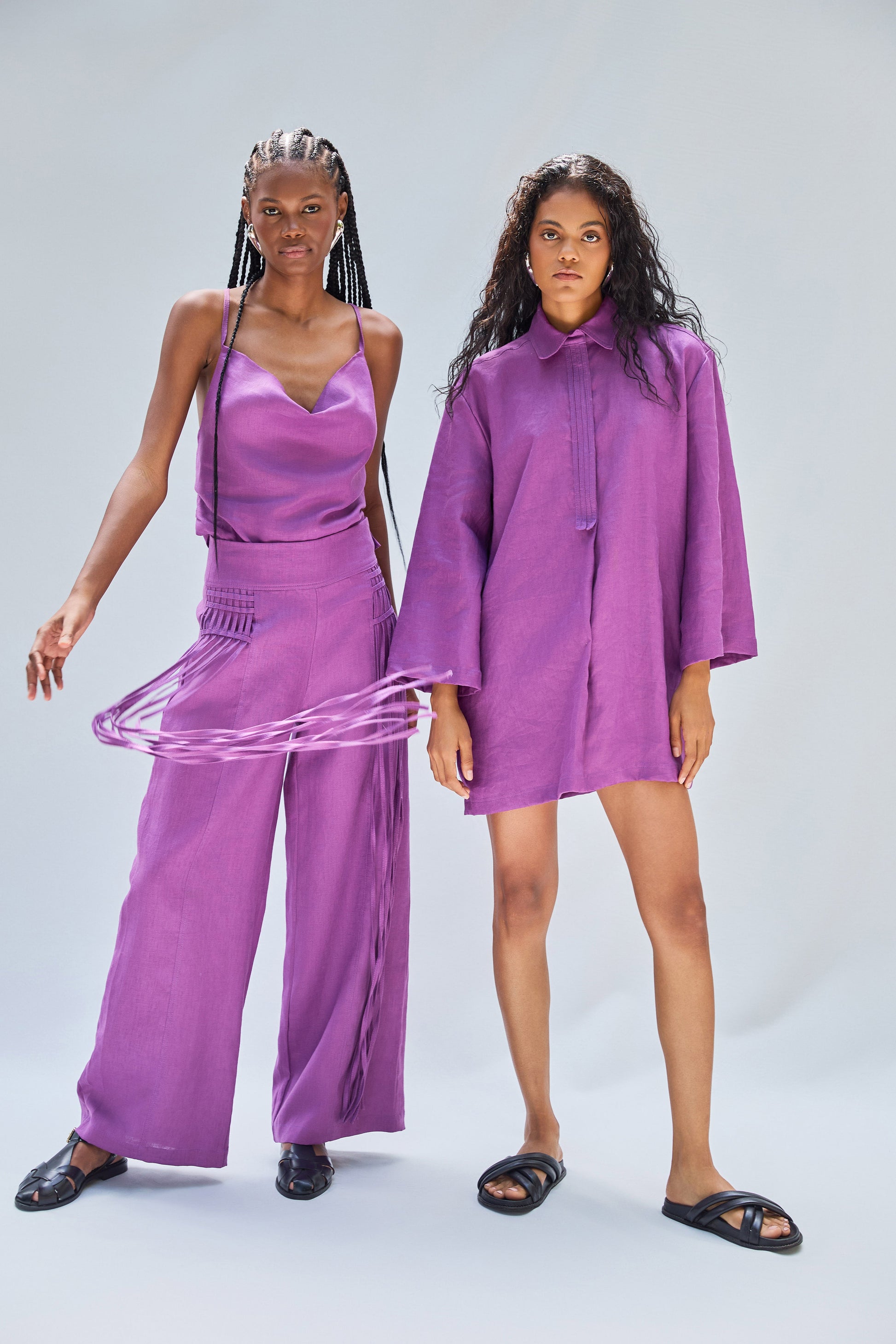 The LUZ pants are a contemporary essential made for structure and softness. Crafted from 100% natural linen, they feature a high-waisted design with a wide-leg silhouette that flows effortlessly. Clean front pleats, hidden side zipper, and double-stitched seams give this piece a tailored yet relaxed character. The unlined design keeps them light and breathable, perfect for both everyday wear and elevated looks.